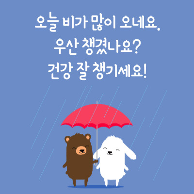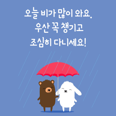비올때 인사말 ♥ 하늘색 메세지 그림
